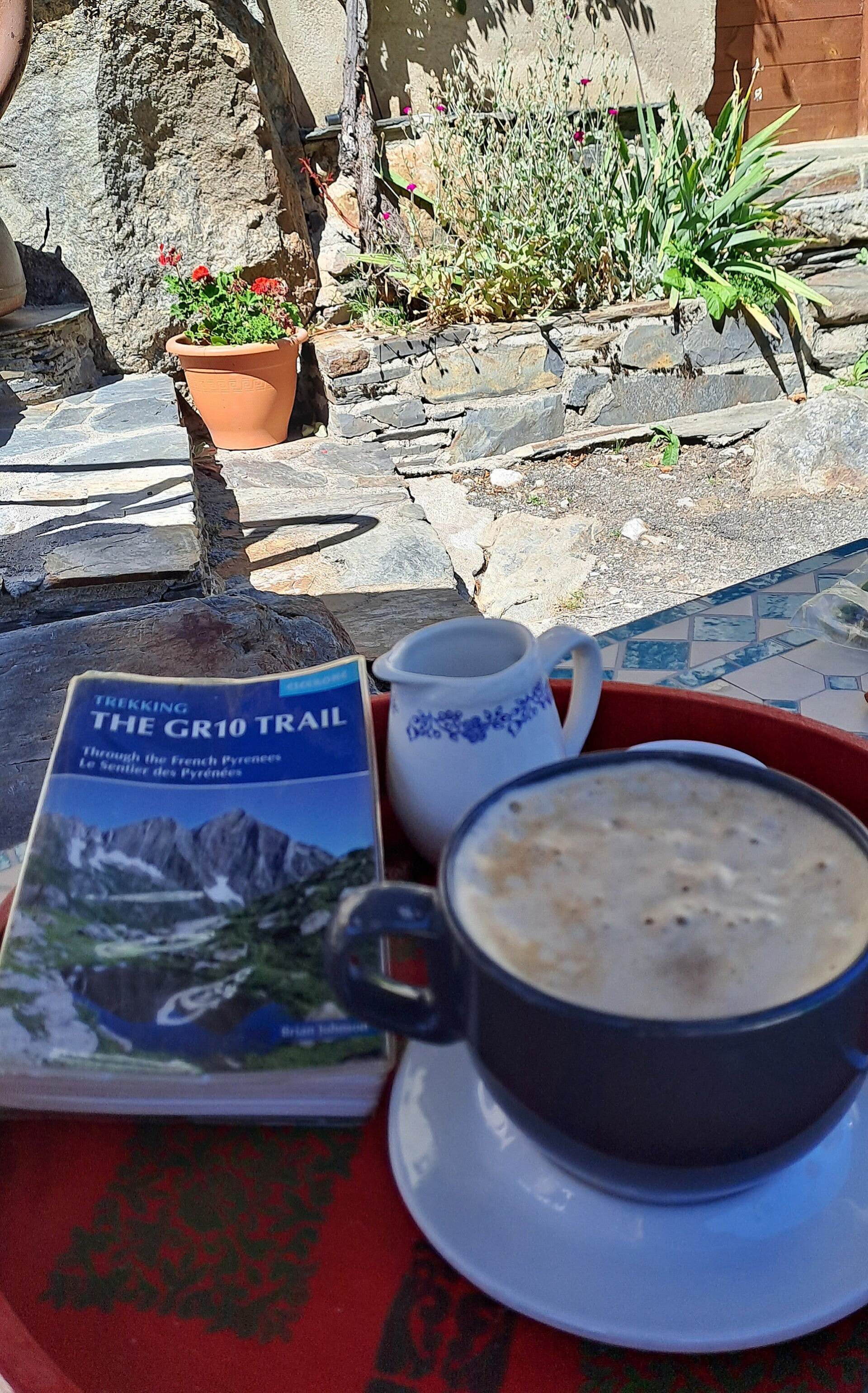The climb out of Marc was steep, and the heat had built through the morning to a level where a breeze was very refreshing! I'd had two cafe-au-laits though, so all was good and I was loving the trail. We were soon high above Marc. Impressive how quickly you can gain altidtude on the GR10, my dream cafe was far below now and just a memory already!