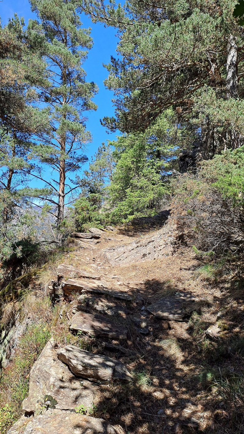 We were climbing the lower section of Les Cadelats (2372m), and after a while the path made a long traverse. A narrow path, with great view and spectacular corners that seemed to be the end of the path when approaching!
