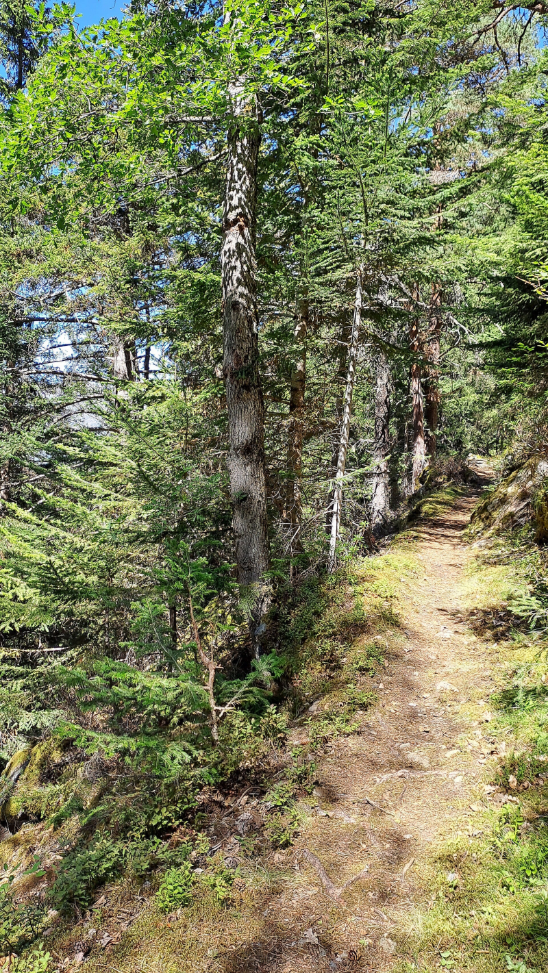 The path started a descent towards the village of Arties through completely wooded slopes of Les Cadelats (2372m).