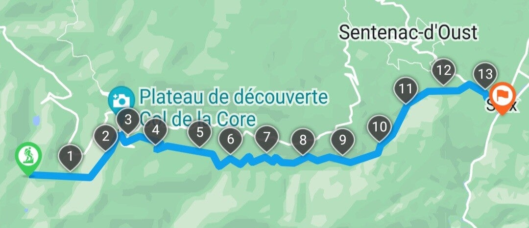 - Finish: Wild Camp after Col d'Escots on slopes of Pic de Cerda (circa 1550m)