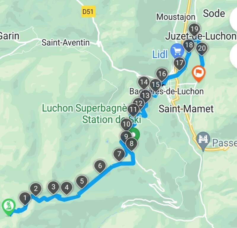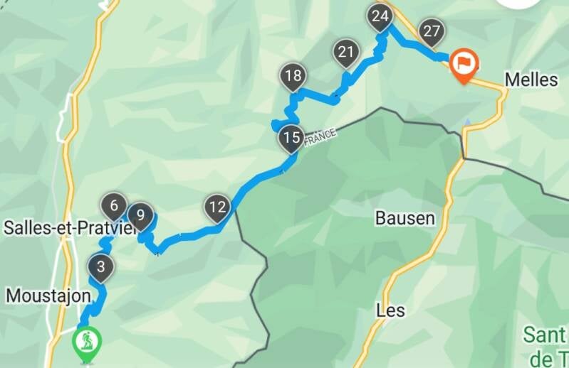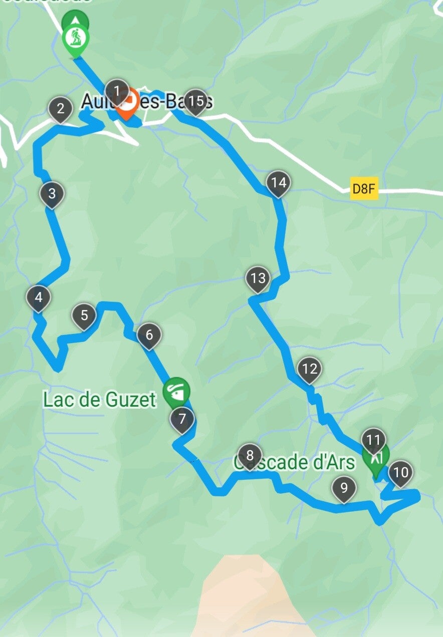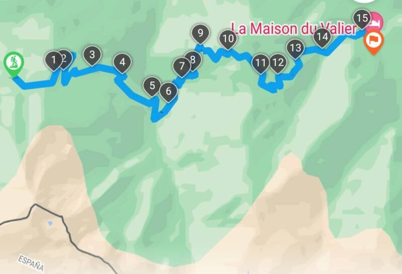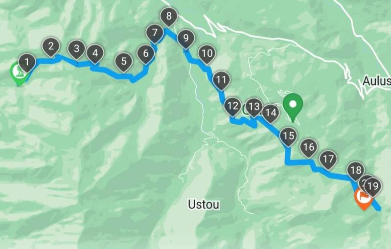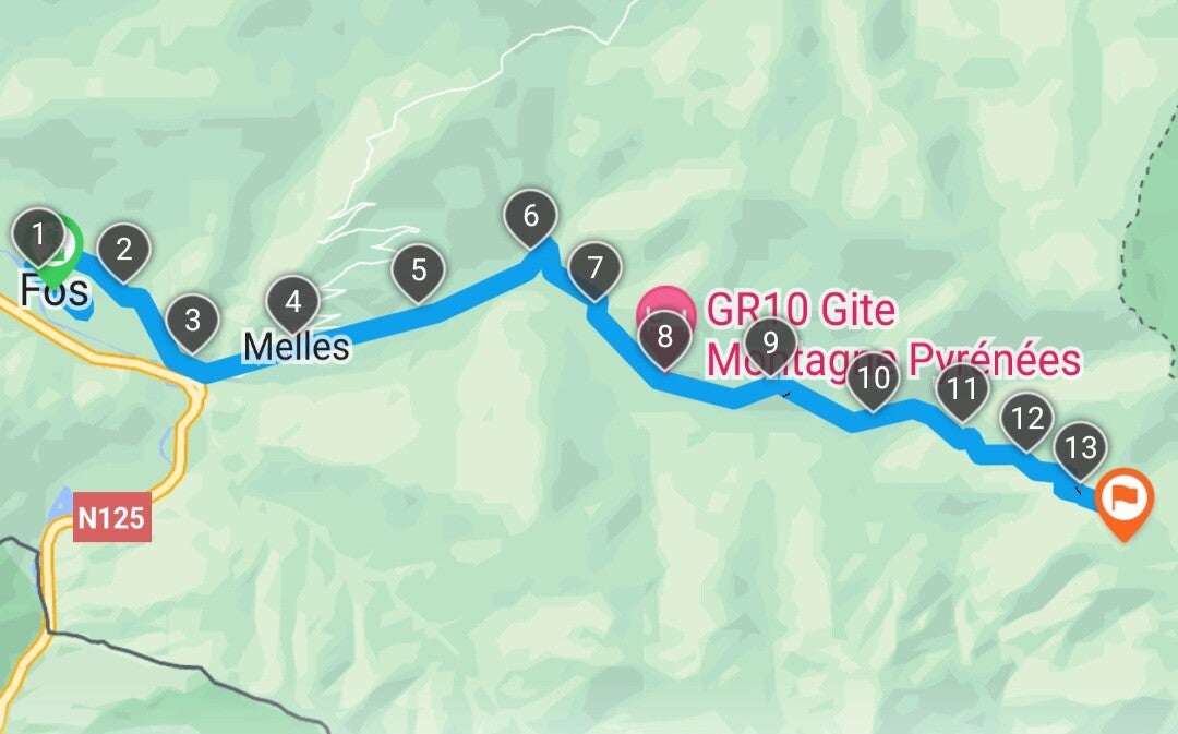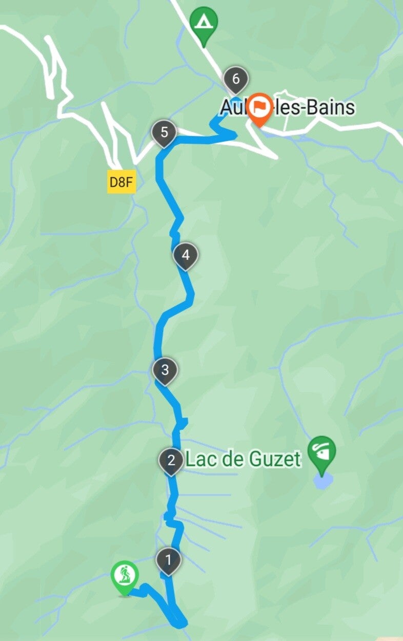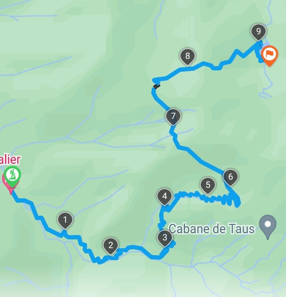 - Finish: Wild Camp just below Refuge d'Aula (circa 1550m)