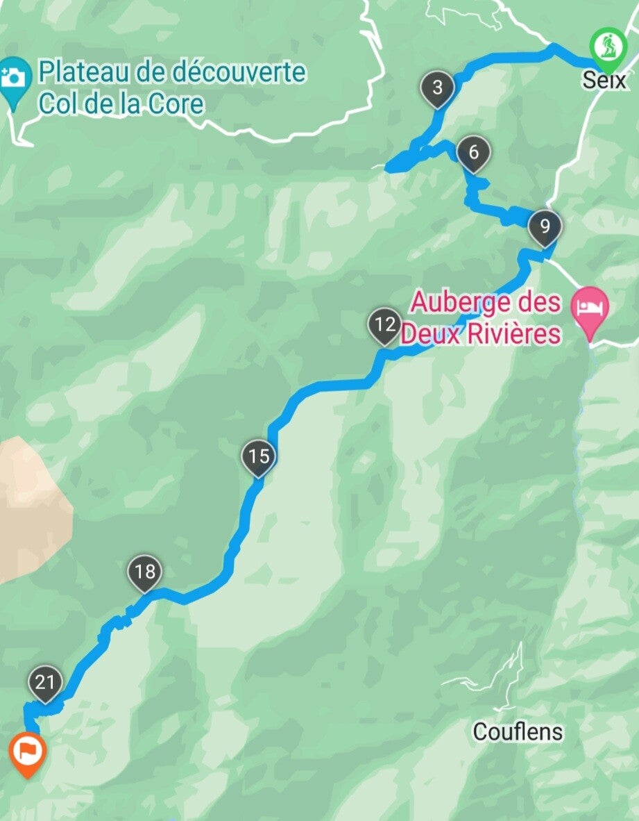 - Finish: Wild Camp on Tuc d'Eychelle before Col de la Core (circa 1700m)