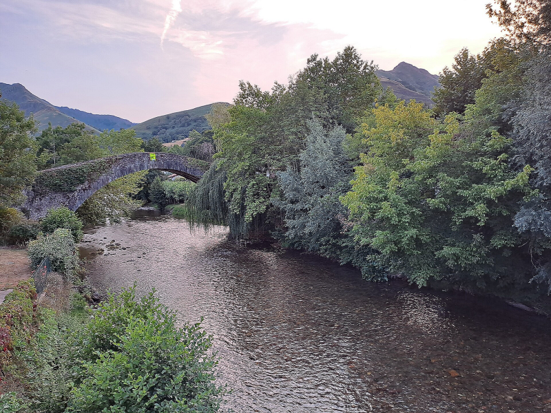 Arriving into Saint-Étienne-de-Baïgorry brought relief from the heat in mind only due to the proximity of the campsite. The tarmac was acting as that extra heat boost having absorbed the sun's energy all day, so I headed towards the edge of the village and a pleasant campsite. The supermarket was shut as it was Sunday, what is it with me and shut supermarkets I was asking myself?! But, it was OK as stuff was open in the morning and there was a pizza shop for tonight! So, ice cream in hand from the friendly campsite lady I contemplated tent up first, or river swim first? River swim, so utterly refreshing in the 38 degree heat. It was much more comfortable to make camp after that, and a nice chill out was had laying as still as possible in shade to see out the peak afternoon/early evening heat.