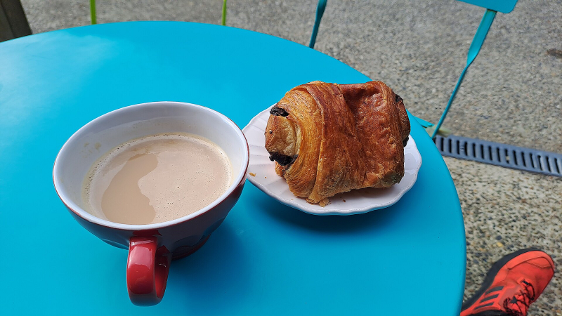 They did coffee back at camp so I had two! One to accompany my croissant and one to accompany my chocolatine! It was lovely to chill in the laid back atmosphere of the campsite, it was warm weather and lots of friendly people passing by, and I had the campsite dog for a bit of company!