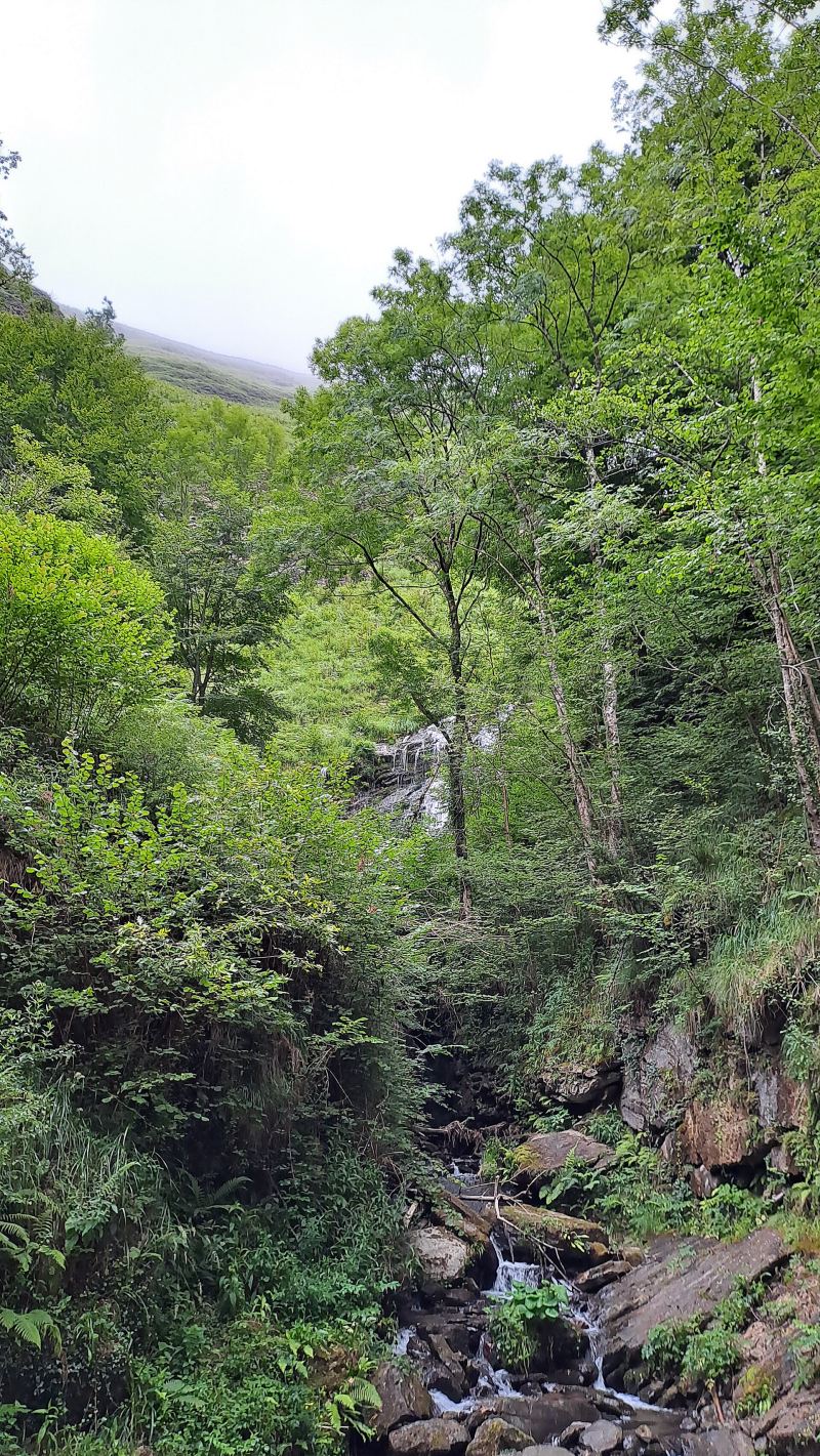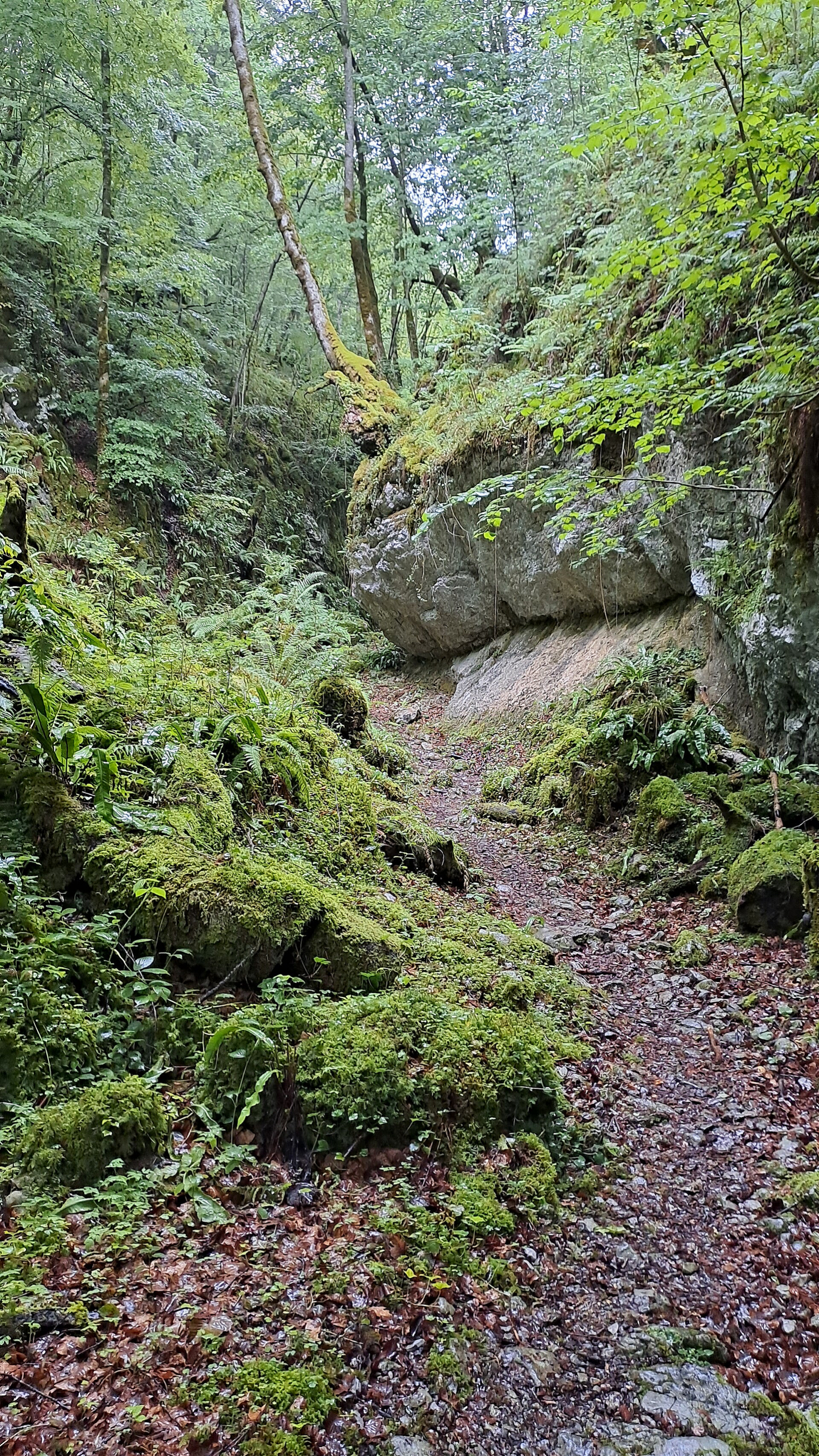The GR10 eventually veered off the road down a very narrow path through woods and then into more open ground until it popped out into relative civilisation of a few houses! A road took me down to the bottom of the valley and then a steep path up to the Gorges de Kakouéta. This gorge complex is renowned for being spectacular but post Covid it remains closed in an opportunity for much needed restoration it seems. It was a very heavily visited tourist spot, it seemed good it was being conserved for the future.