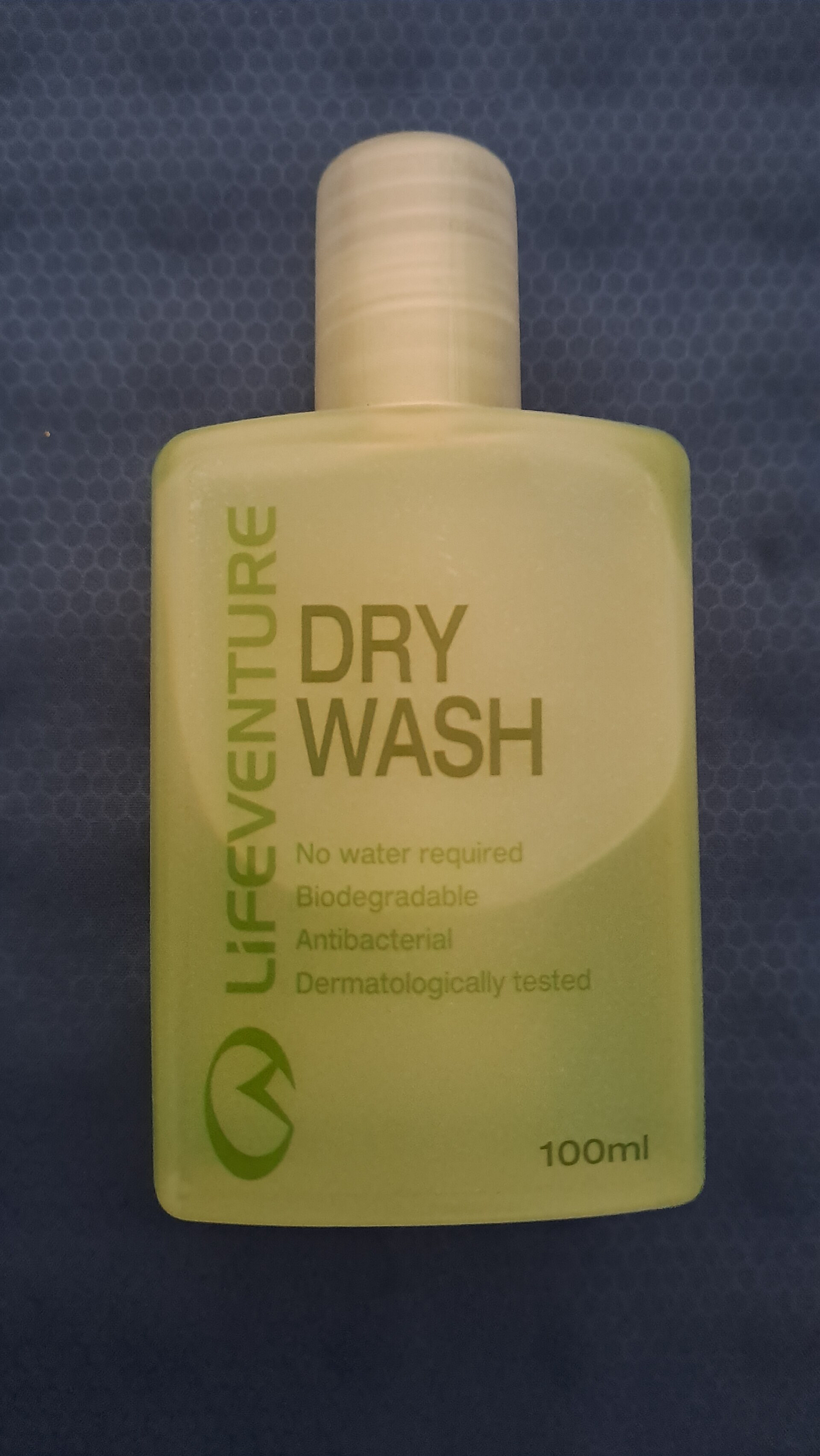 However, I only needed to do a bit of this before I reached this grassy switchback. OK, I'll give it switchback status, but grass to camp on was a no! All was OK though, there was a roped off flat patch of really rough sort of grassy terrain, recently mown down it seemed. It was late, and I knew on the long steep climb ahead there was zero camping possibility, so this was home for the night! Setting up the tent was awful, the ground was a strange rough grass and cut back shrub mixture, not campsite material. But, got it done and managed to get organised and comfortable and clean in my tent. I bought this Lifeventure Dry Wash stuff to pack before I left, two bottles of course in the just in case packing mode I had! I thought it was a body wash, but it's actually and hand washing gel ... I beg to differ, I've started to use it to refresh the parts other gels cannot reach! It's great to clean feet and well, you know, other parts of the body!!