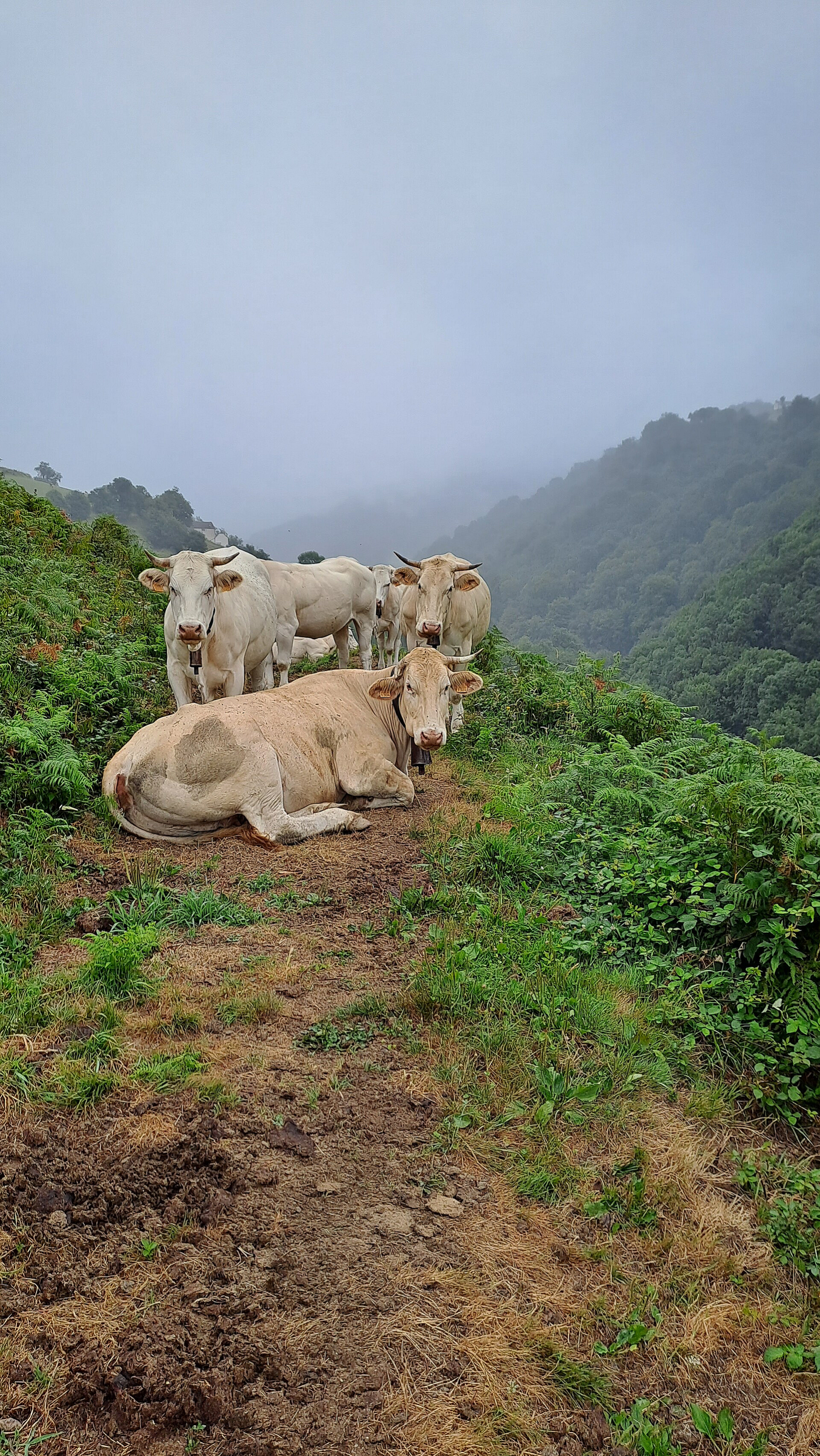 From here there was a long stretch of farm track traversing the side of Sarimendi (1484m) and Izeyto (1464m) which I'm sure would've given great views but I was staring into white mist, cloud, fog or whatever it was .. my new term was going to be damn brouillard! Think that means fog, but at least I don't have to classify it in English now, and to me it sounded a much better word to utter with annoyance!