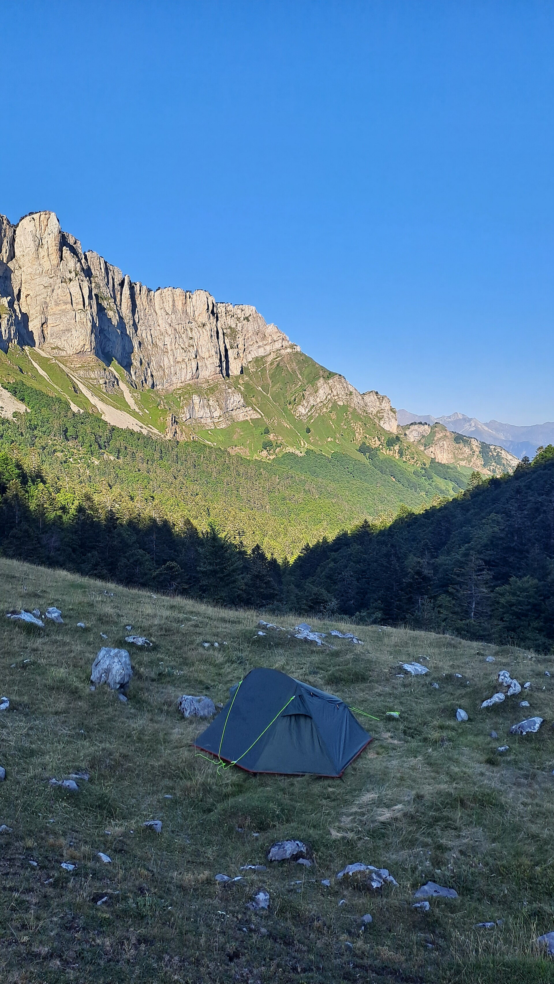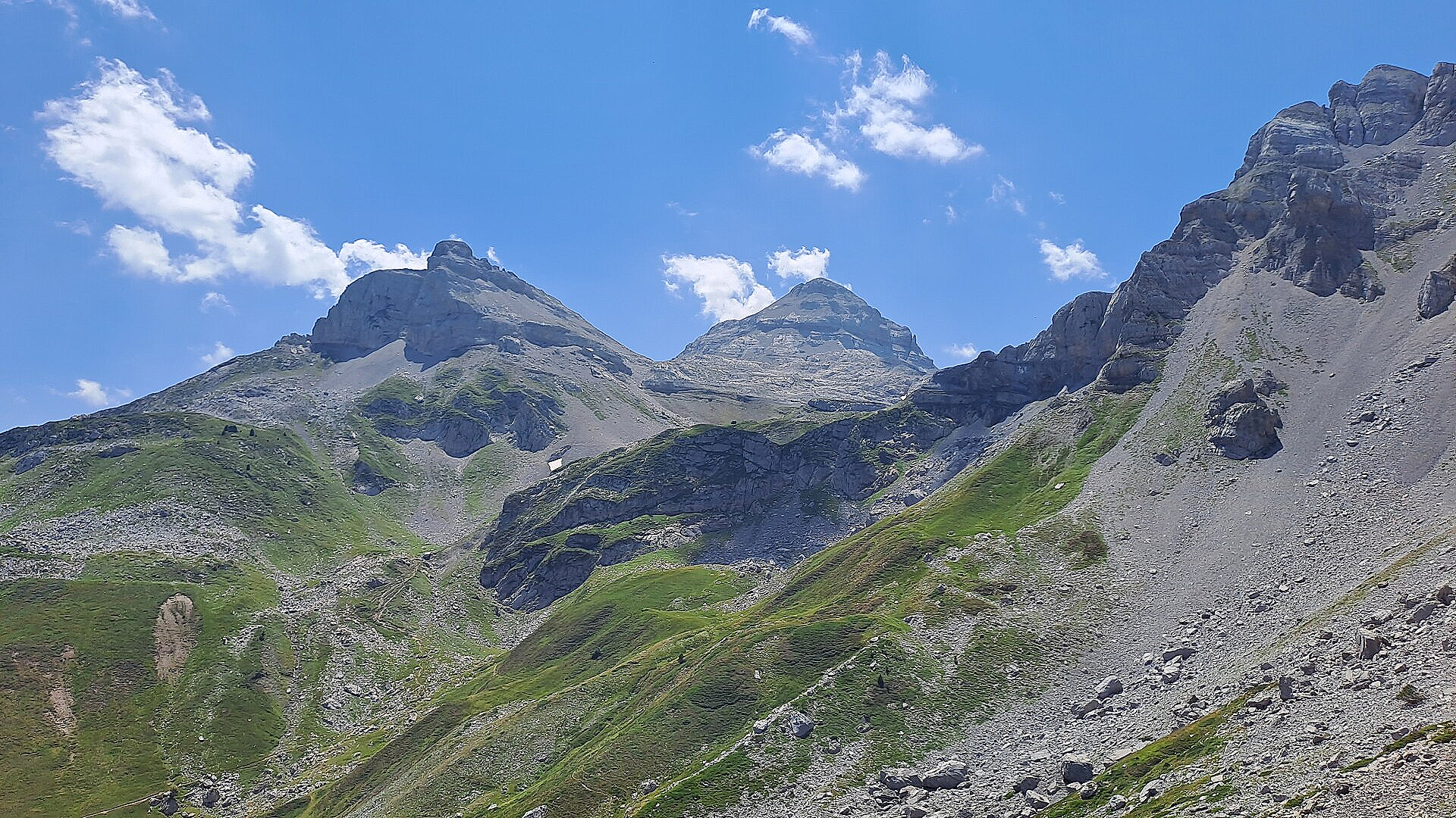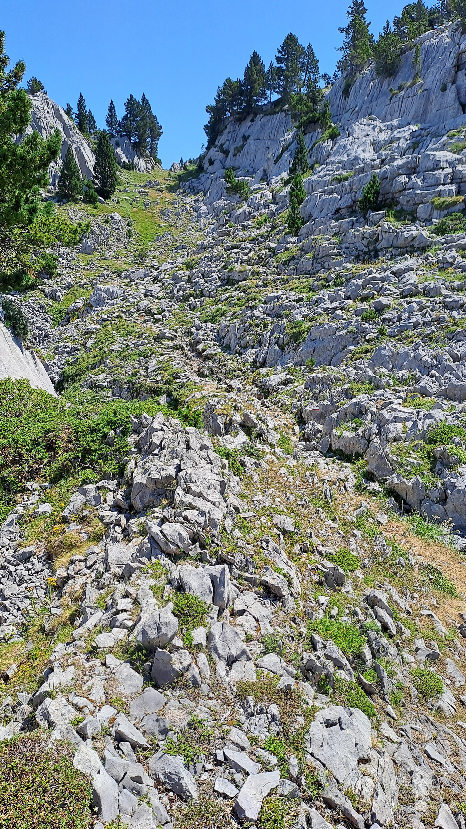 After a short, steep descent I filled up with water from the spring at Cabane du Cap de la Baitch (1689m). The guide book said good camping was possible here, but it looked like that had changed in the years since the author trekked through! So, I carried on in the hope that better options would materialise.