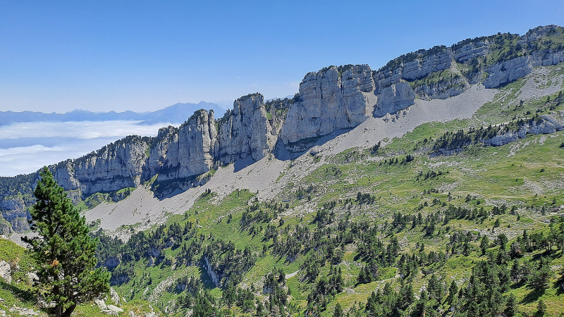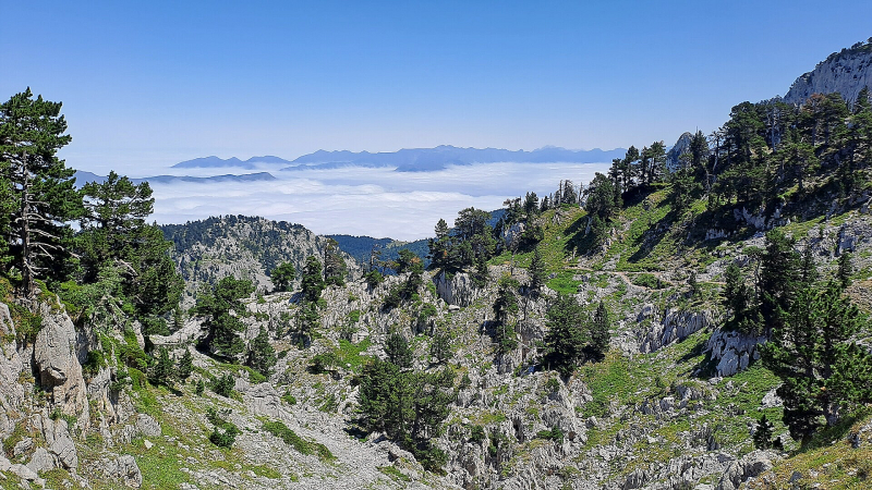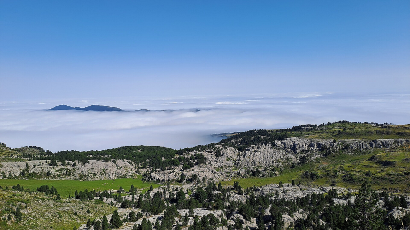 However, to my delectation, as I climbed gently on a track climbing the slopes of Soum de Lèche (1839m), I emerged from the cloud into blue sky and an absolutely glorious panorama!