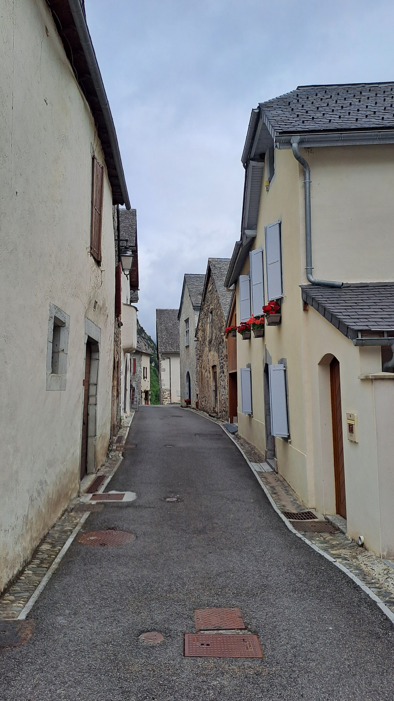 Borce was perhaps the loveliest mountain village I'd passed through so far. Picture perfect and gave the impression of outside money moved in, and any old locals moved out! Anyway, beautifully kept with lovely spring water points and even an immaculate public toilet for me to use! The cafe was shut Mondays, no café au lait here, shame! So it was onwards to Estaut as I established in my best French that there was a bar/restaurant open there! To make up for my disappointment at Borce I had two café au laits at the Randoneur restaurant! Just before the Randoneur there was a lovely little food shop, very organic and healthy, so I got a very tasty sounding portion of fruit and nut mix to fuel the next climb!
