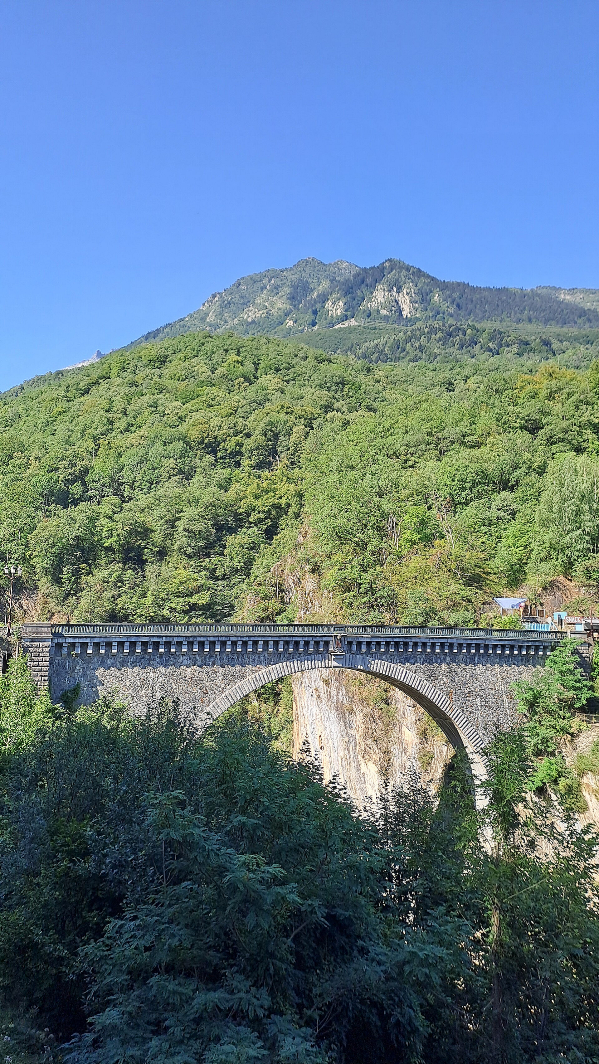 I decided to take a walk back up to the Pont Napoleon again, to watch the Bunjee jumping with a café au lait! This was a nice walk, and the bridge was impressive, but no Bunjee and no café au lait! The snack place was shut! So, I ambled back down the pleasant walk to Luz-Saint-Sauveur! About the bridge .. Napoleon III had this bridge built (1859 to 1863, height 65 m) to thank the inhabitants of Saint-Sauveur. The Napoleon Bridge was built during the visit of the Empress Eugenie, who was cured of her sterility at the thermal baths of Saint Sauveur. This bridge opened up the Gavarnie valley .. all my own knowledge that!
