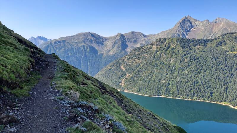 The GR10 went around the North end of the lake and then started to climb the slopes of Pichaley (2626m). Initially the climb was steep, but the gradient levelled out and there was a traverse that gave stunning views back down to Lac de l'Oule.
