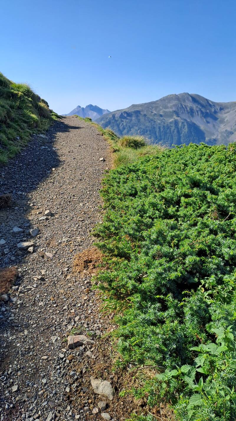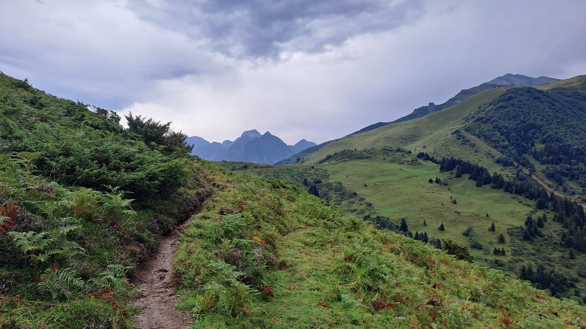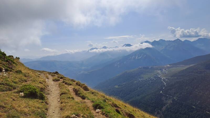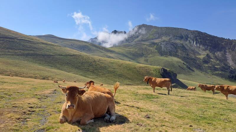 Once passed the road climbers and descender the path started a long descent to eventually get to Vielle-Aure. It started gently, along narrow tracks worn by man and beast into the grassy slopes.