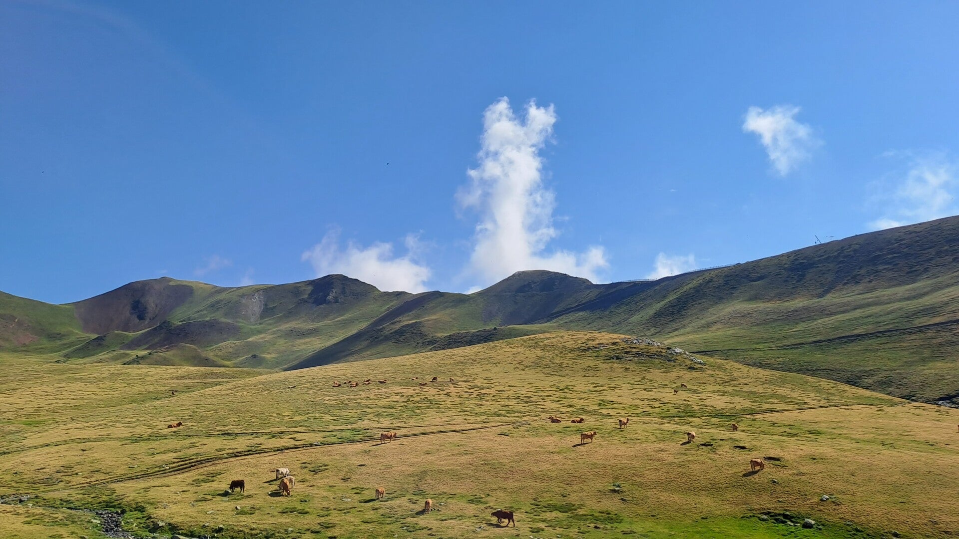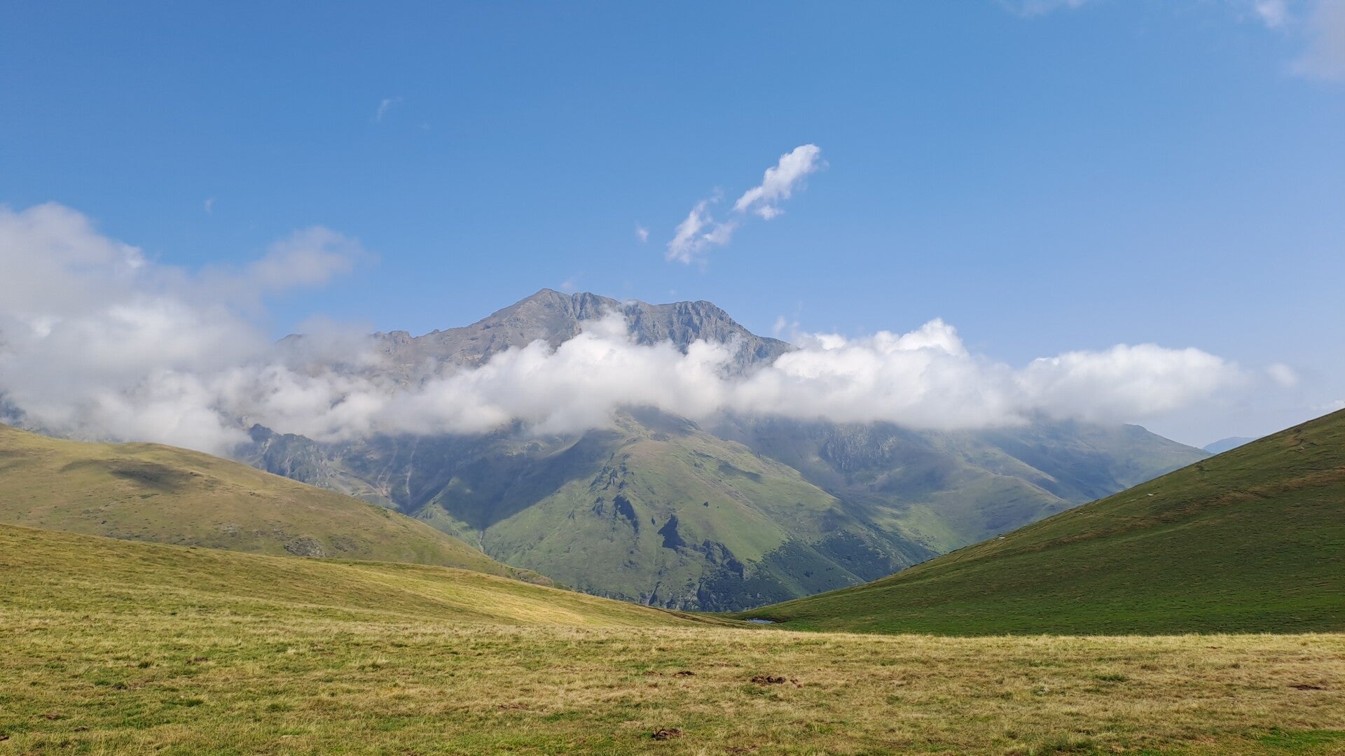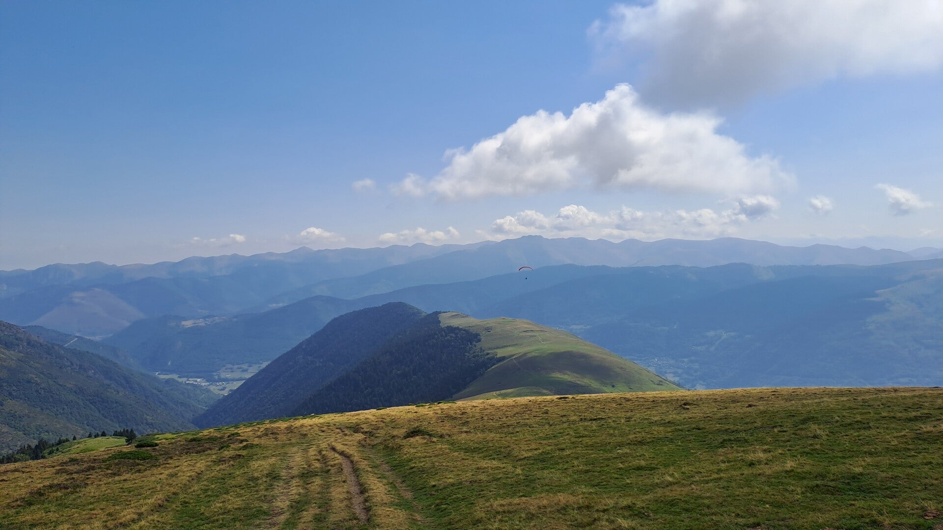 Once passed the road climbers and descender the path started a long descent to eventually get to Vielle-Aure. It started gently, along narrow tracks worn by man and beast into the grassy slopes.