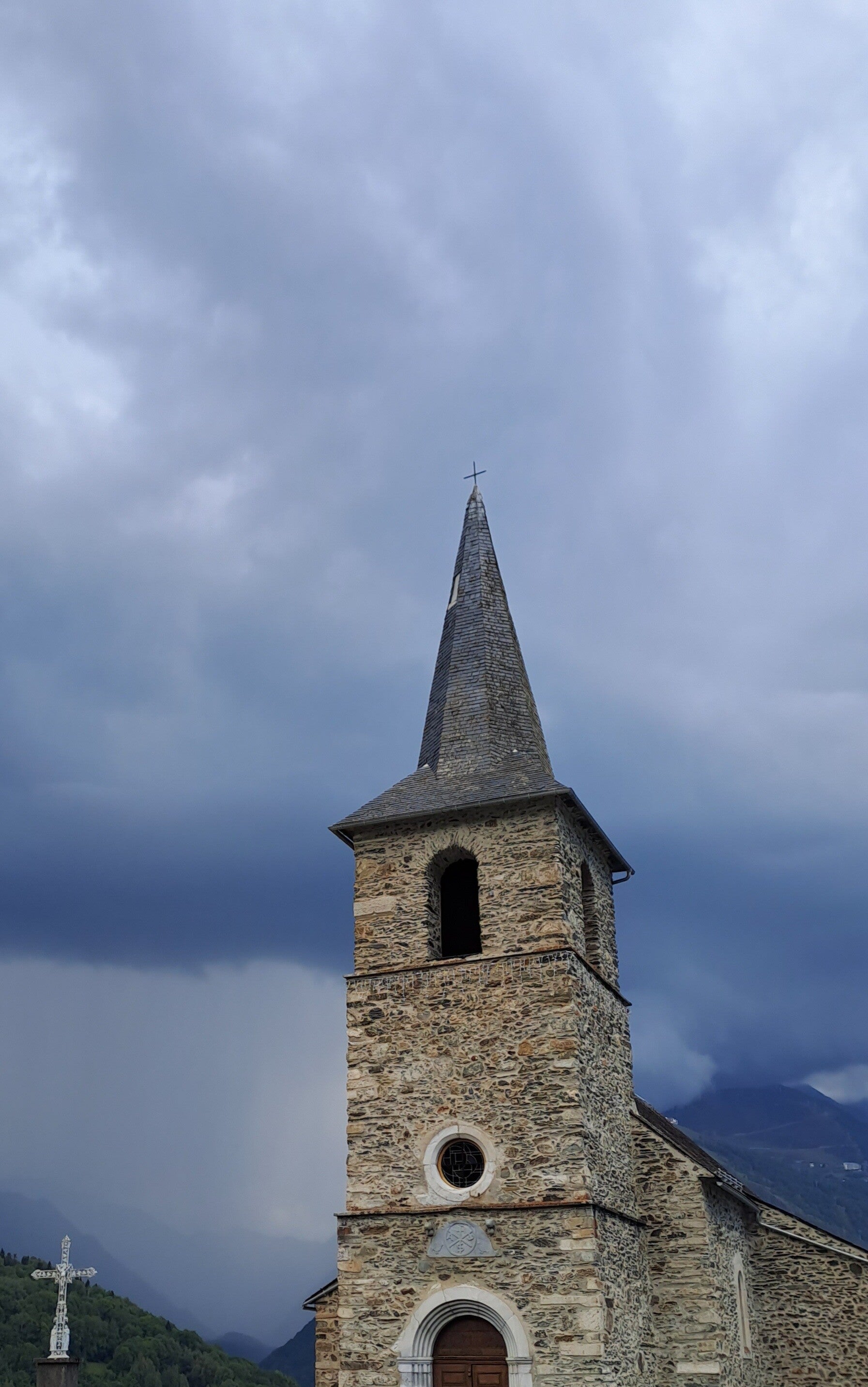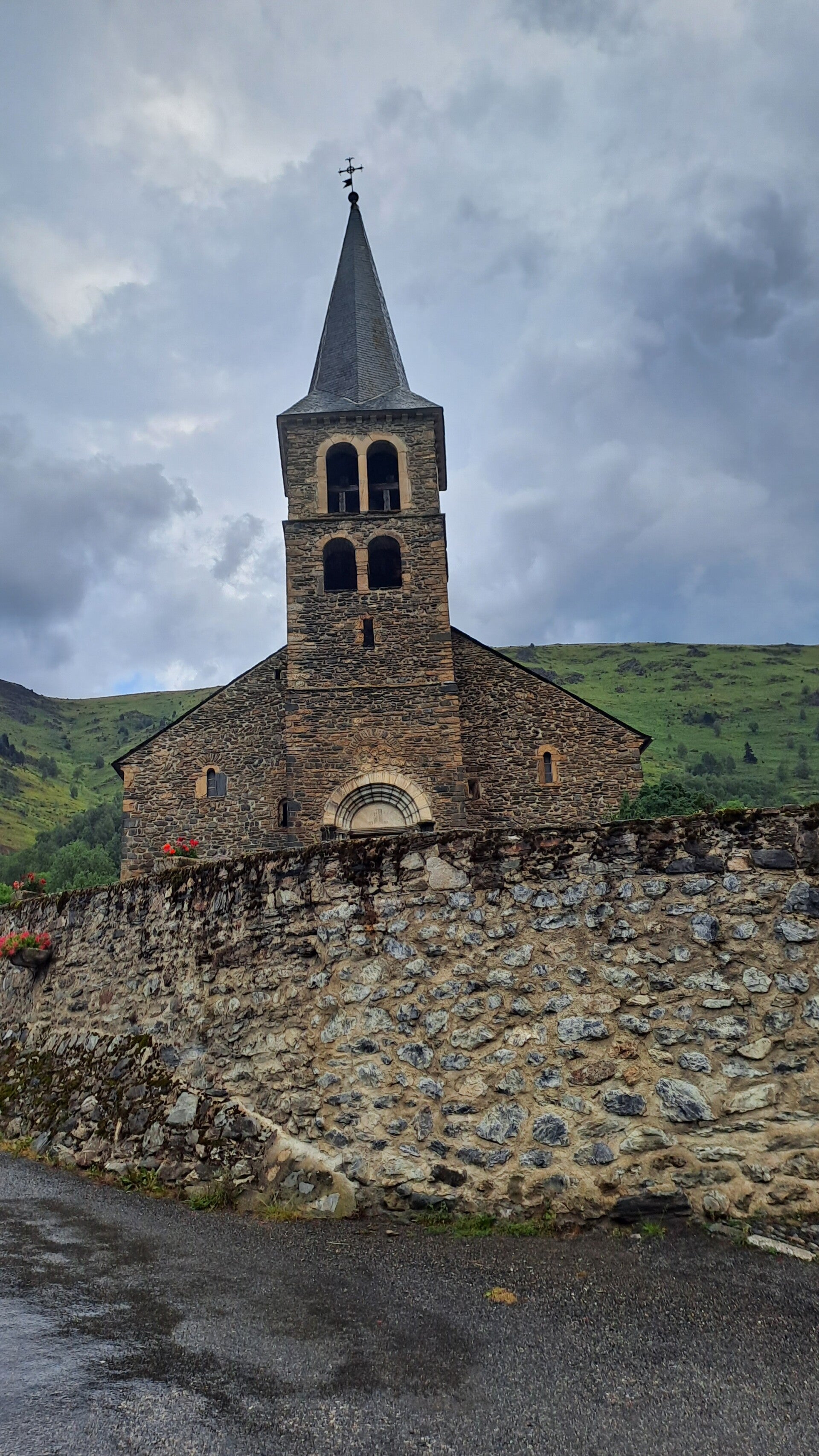 After my soaking the next village on the upward journey to Col d'Azet was Azet itself! Another attractive village, even after it's drenching!