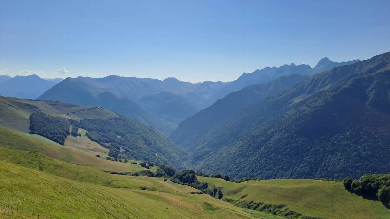 Superbagnères (1804m) eventually arrived after a break at a picnic table. From here my day took a turn for the worse! I was hoping for a nice attractive ski resort, with a lovely bar for a café au lait! Instead, it was a pretty ugly, small collection of big hotels! Therefore, I abandoned plans of the idyllic café au lait and carried on.