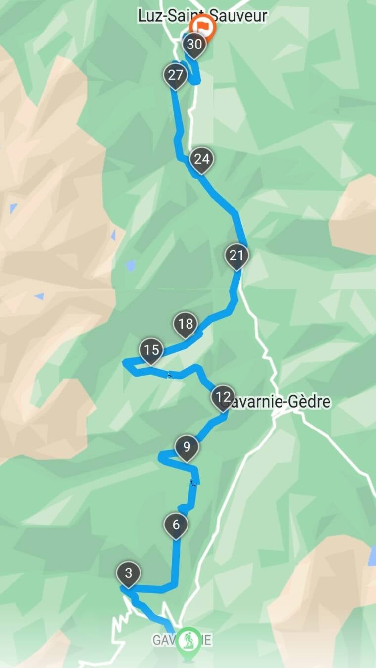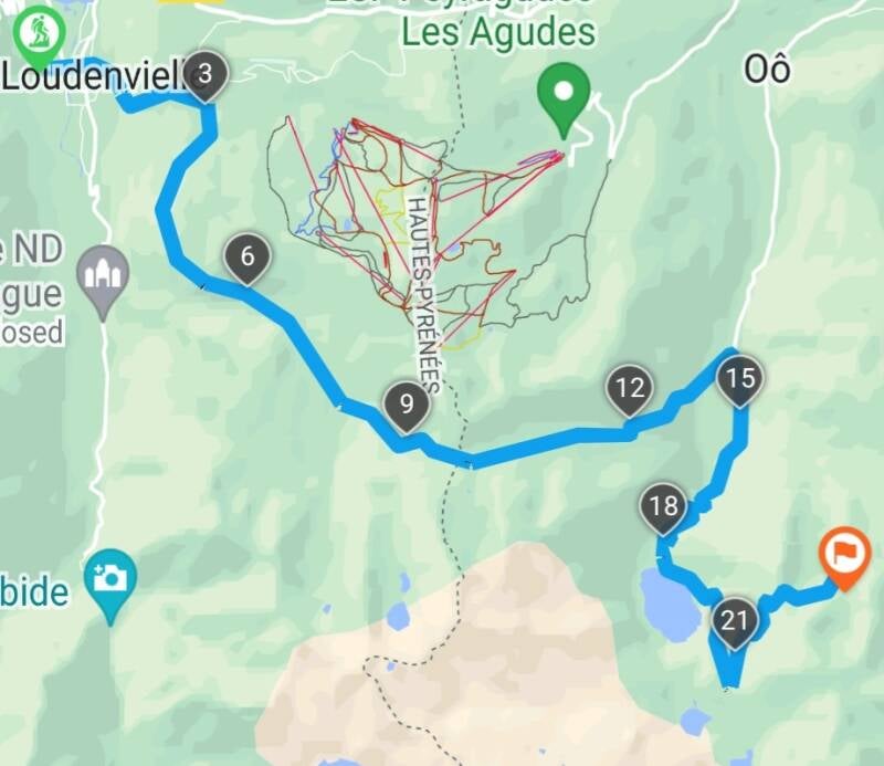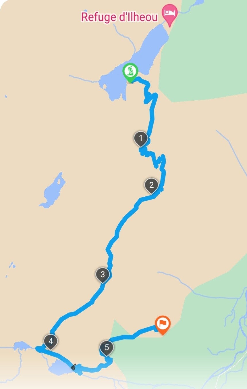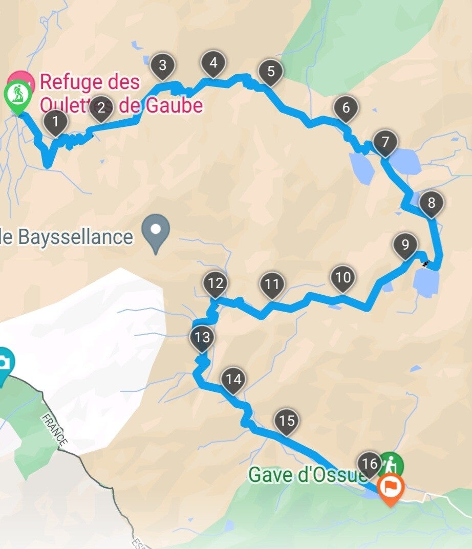 - Finish: Aire de Bivouac at Refuge Oulètes de Gaube (2151m)