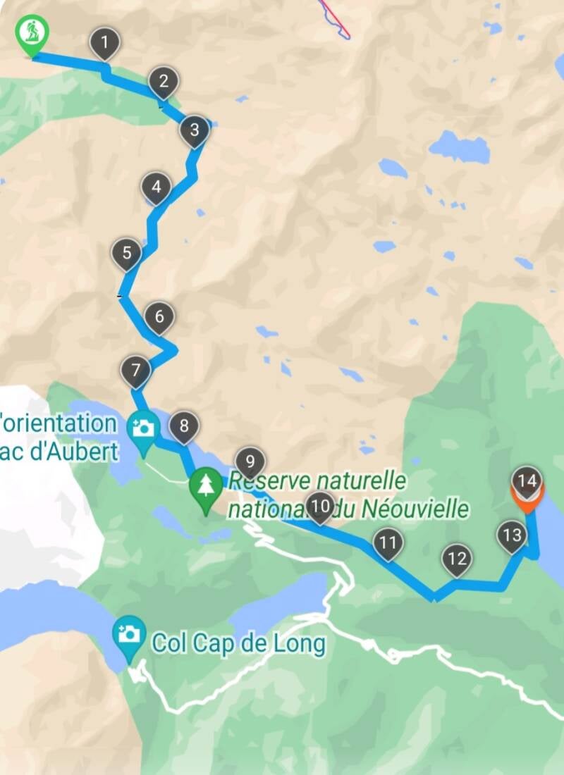- Finish: Wild Camp on Northwest Shore of Lac de l'Oule (1821m)