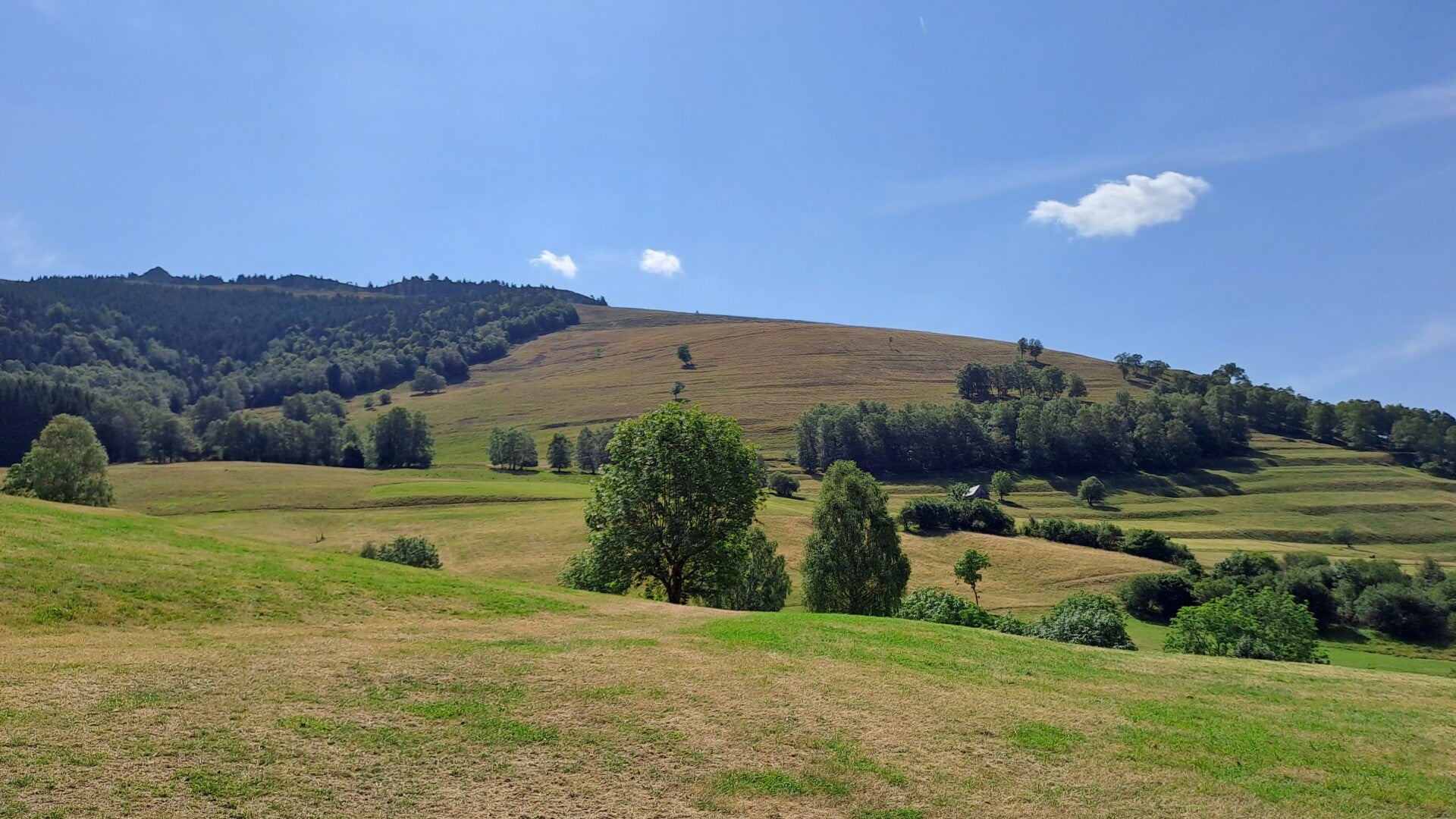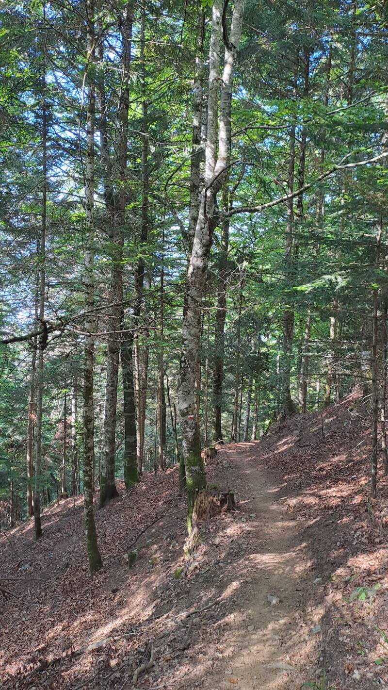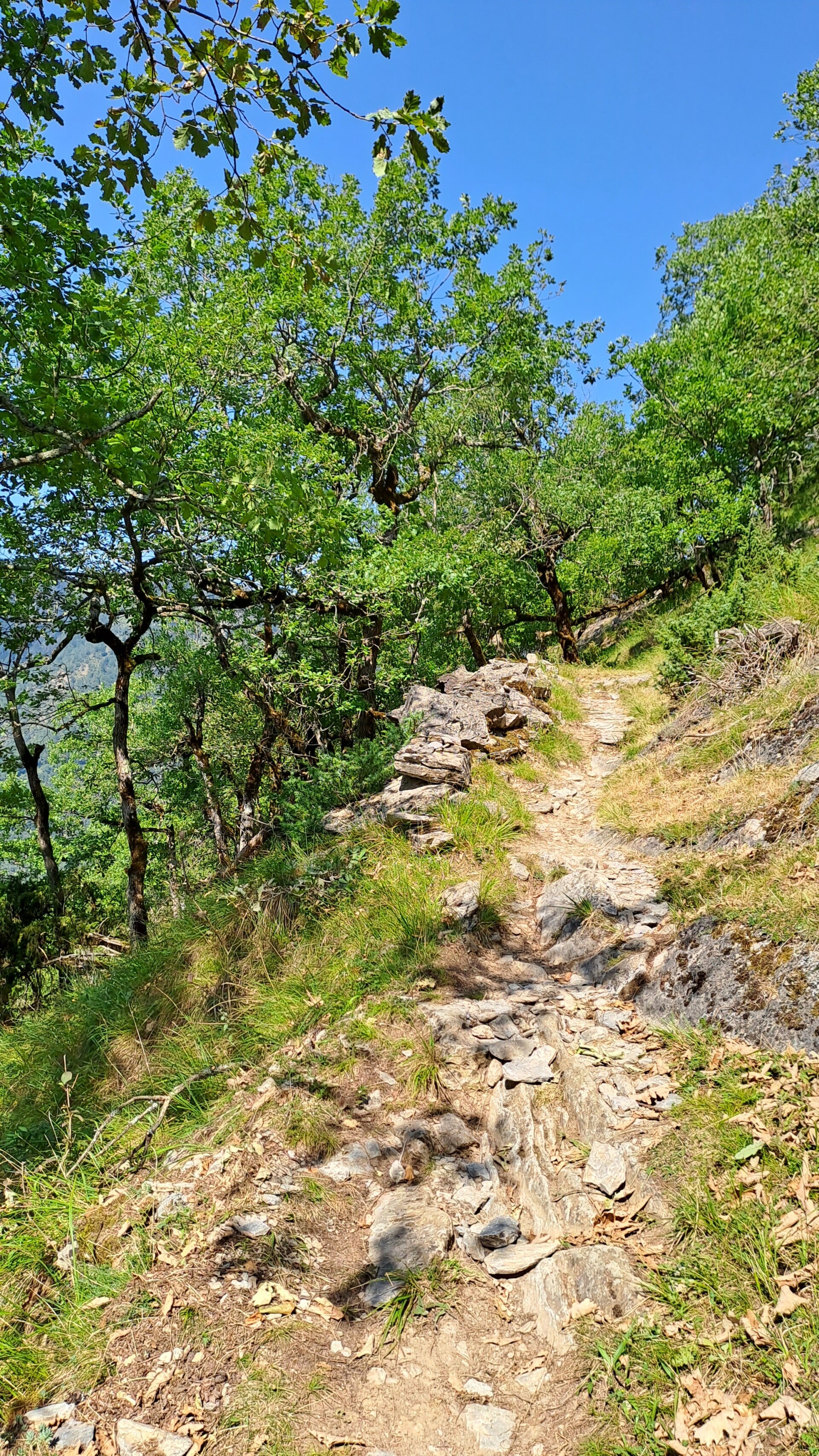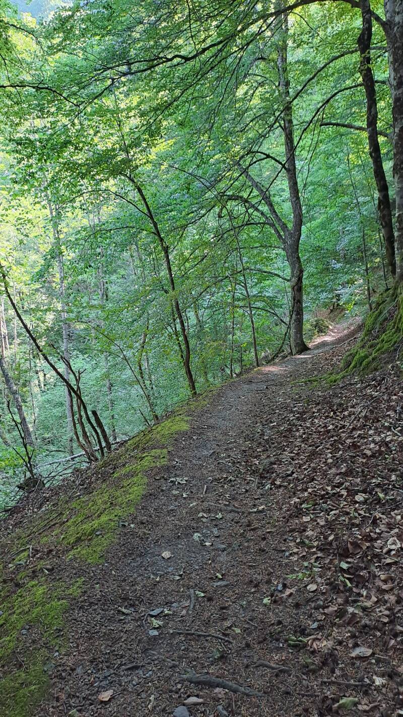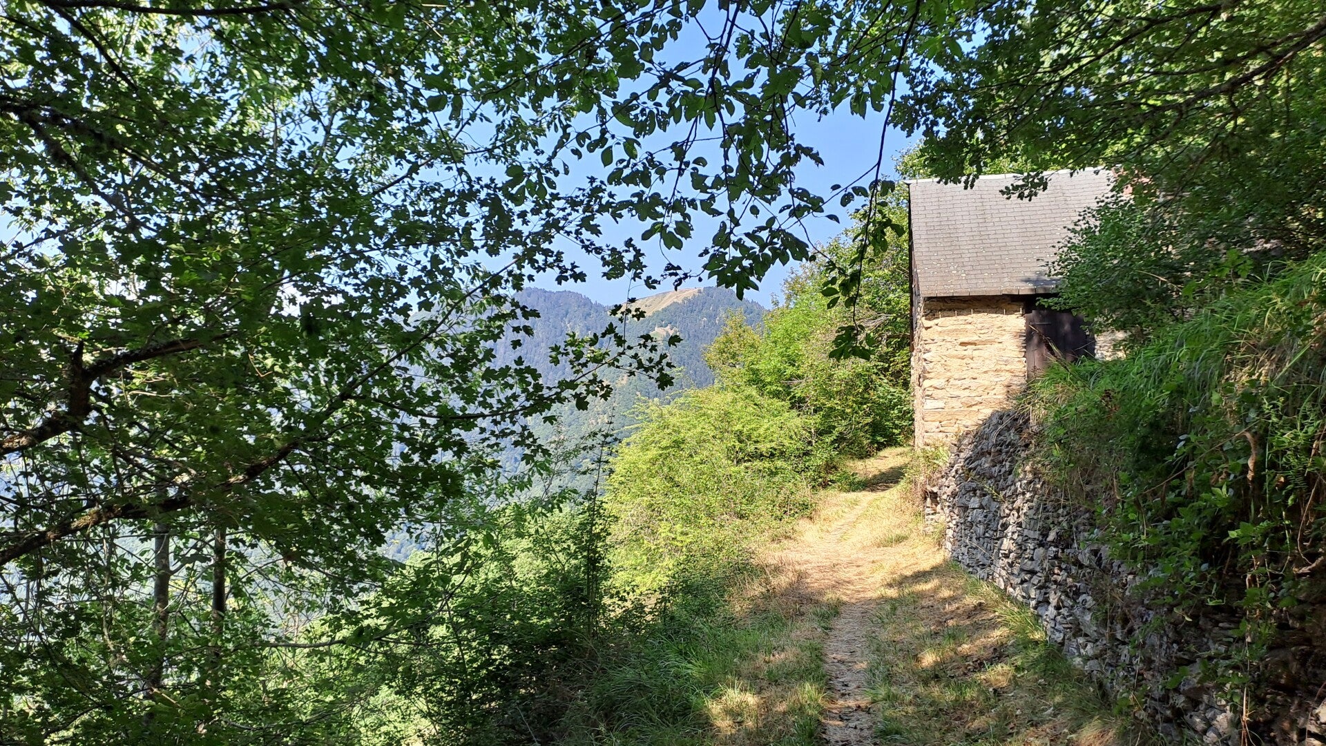 After Sode the path climbed less steeply through lovely, peaceful forest. Things steepened a bit on approaching Artigue (1230m) and the predicted high heat of the day had already arrived.