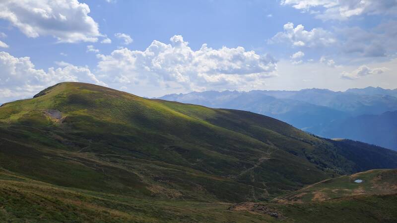 The GR10 climbed nice and gently out of Artigue on a wide track. It meandered through pasture and a bit of forest before arriving at the Cabane de Saunères (1660m). The views down into the valley were really impressive, but for some reason I didn't take any photos - I blame the heat which was now mega! My water concern was rising as I knew now there was none until a stream on the descent, and there was a lot of sun exposed climbing to go!