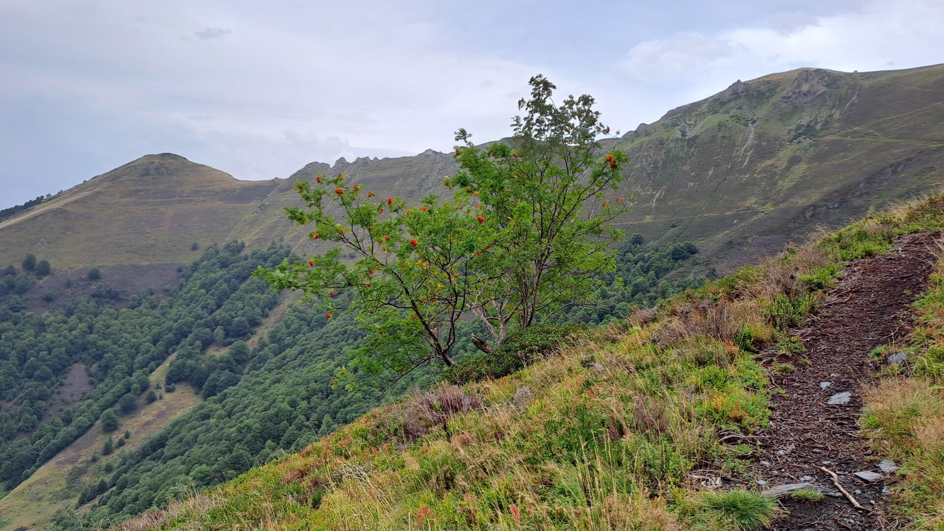 The path continued a pretty steep and tough descent towards Eylie-d'en-Haut (990m) which took me over rough pasture, old mine workings and then through thick forest.