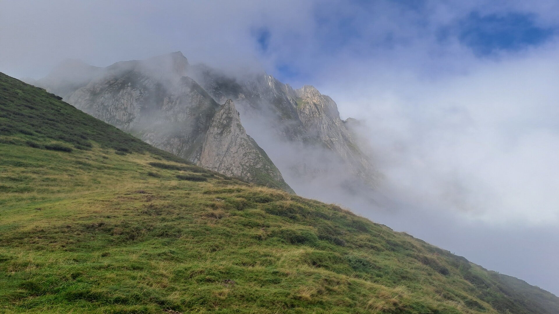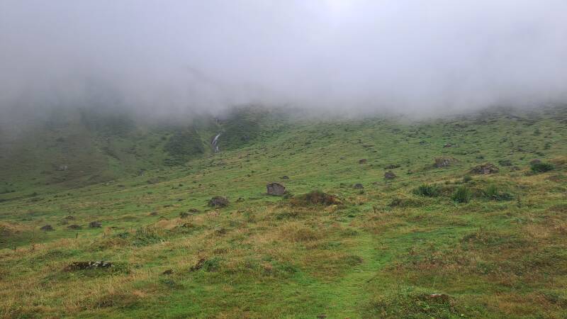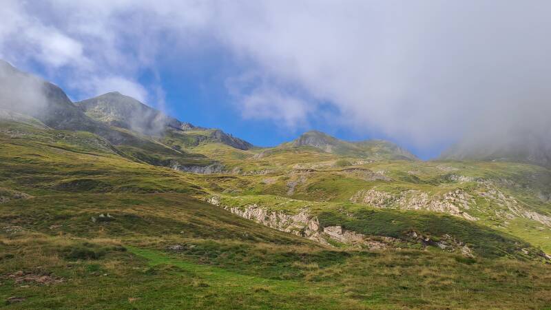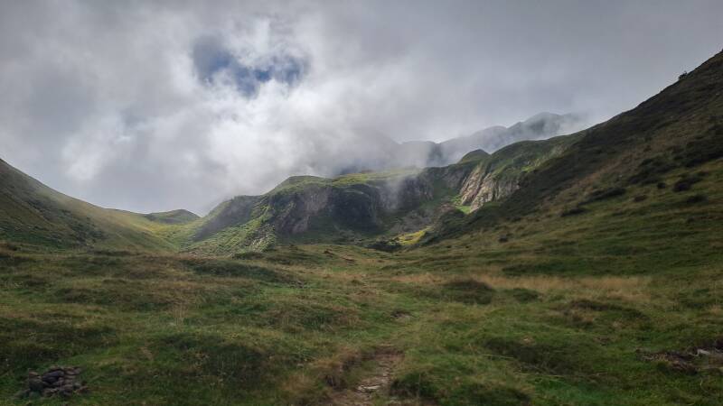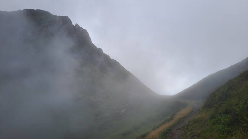 The first order of the day was a climb surprise surprise! The path climbed into the cloud towards Bouche d'Aula (1998m). I was hoping beyond hope I would climb through and out of the cloud as I knew the views of Mont Valier were spectacular from up there!