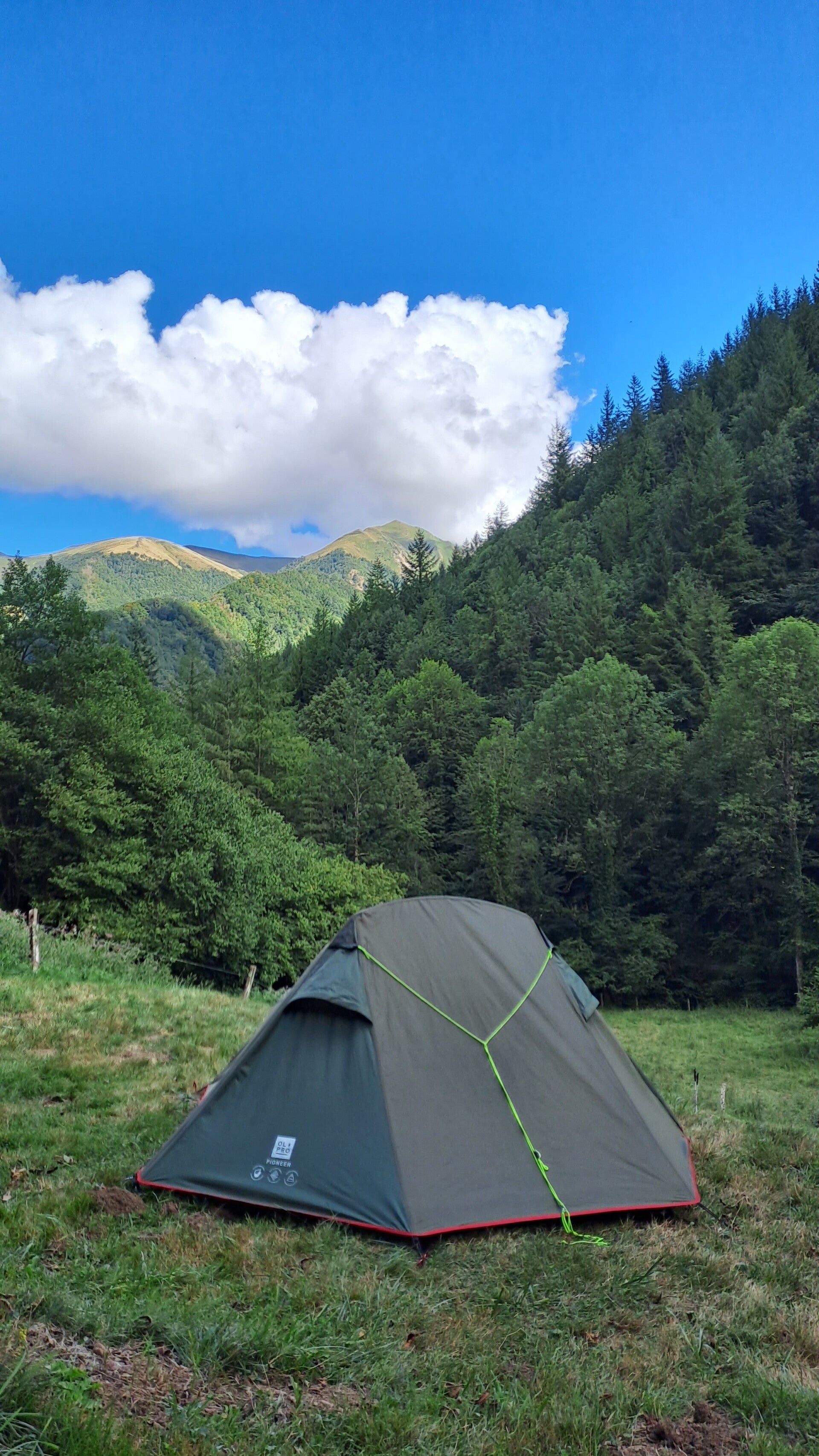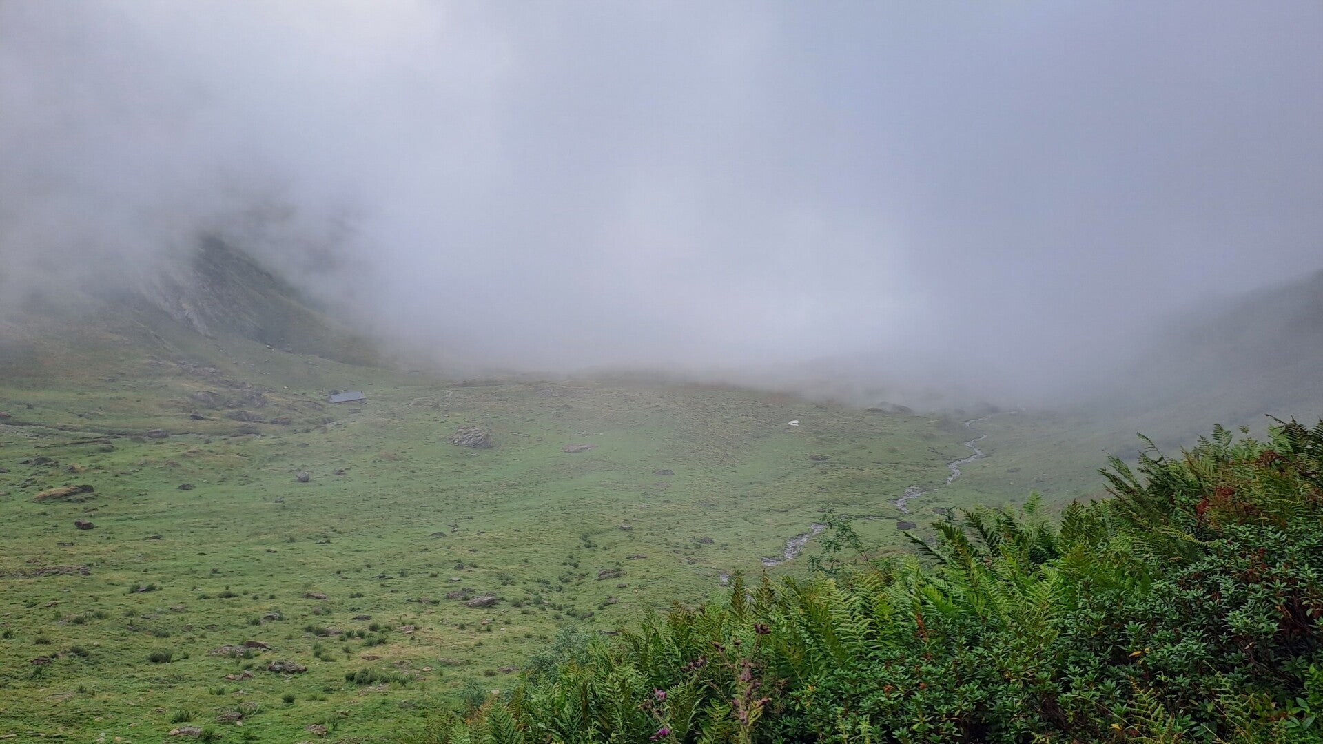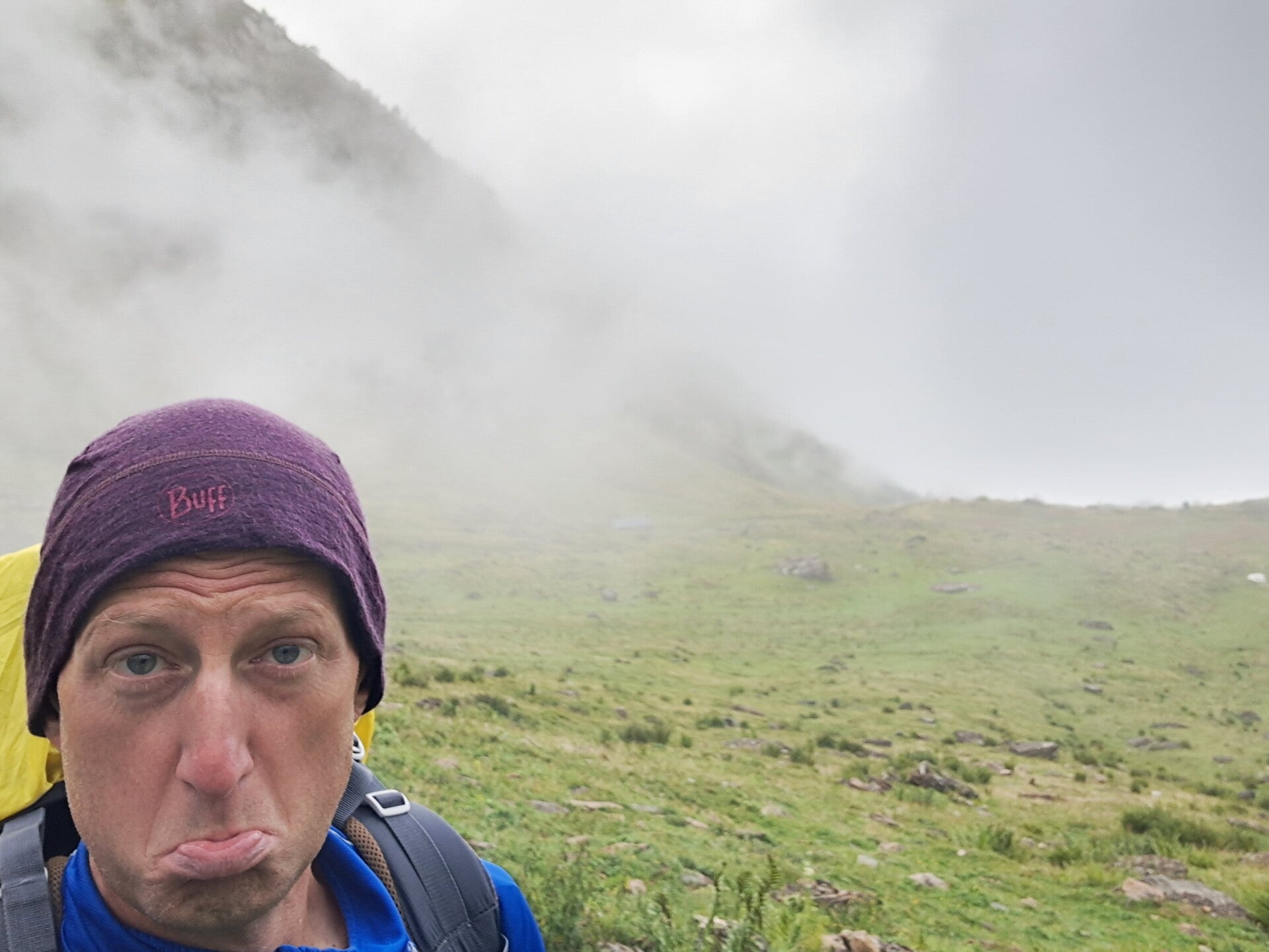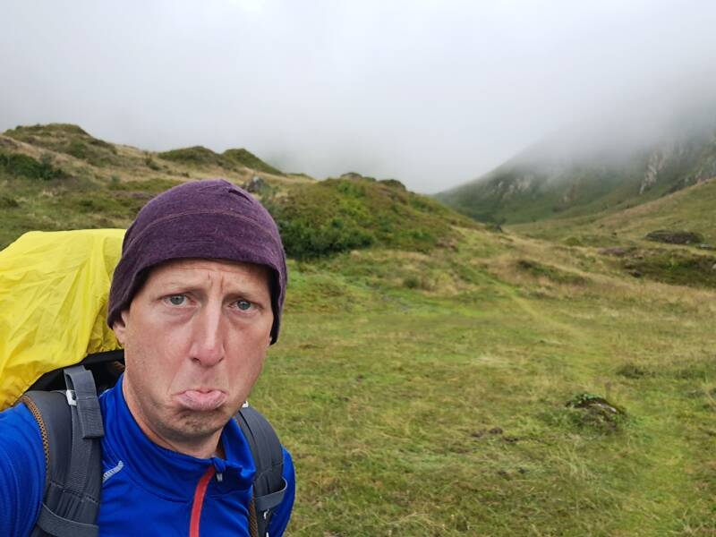 Last night turned out to be a cold one! First proper cold feeling I've had overnight since I got the thermal liner and beanie way back in Gourette! It was manageable and I thought I probably felt it as my thin fleece was wet and out of action for the night! As I laid in my tent awaiting the dream of sunshine and blue skies and warmth I heard some music pass by me! Someone must've started very early this morning! This gave me the incentive I needed to start getting ready. I resigned myself to admit the sunshine and blue skies and warmth was not on the way! It started to occur to me that the calf wasn't giving me much pain, but I hadn't taken a step on the GR10 yet!