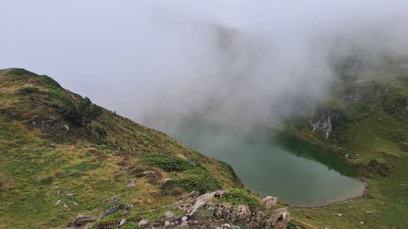 Well, I was right about the views back to Mont Valier not being clear today, but what was lost by that was replaced by an amazing experience with slightly cleared cloud. The biggest thing to strike me in the small bowl I was in just before a short climb to Bouche d'Aula was how so unbelievably quiet it was! Quietness is really loud when it is so so quiet - if you follow my perverse logic?!